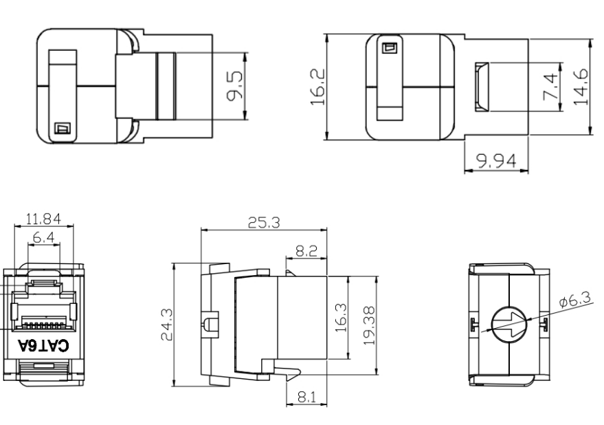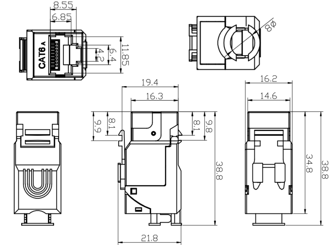 CAT6A Keystone Jack kompatibel dengan kabel CAT6, CAT5E dan CAT5, yang membuatnya cocok untuk meningkatkan infrastruktur kabel yang ada.