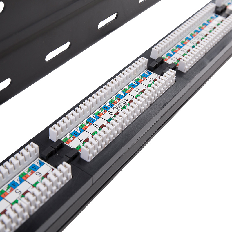 Gaya Pengakhiran: Panel Patch CAT6 menggunakan penghentian pukulan, mirip dengan panel patch lainnya. Mereka menampilkan terminal IDC (Insulation Displacement Connector), seperti 110 atau gaya Krone, untuk mengakhiri konduktor kabel individu dengan aman. Proses penghentian tinju memastikan koneksi yang andal dan konsisten, meminimalkan risiko kehilangan sinyal atau gangguan.